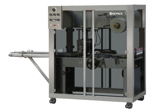 本機適用于各行業(yè)中的單件盒式物品的薄膜自動包裝(帶金拉線)。本機整體機架采用碳鋼噴塑、落地多開安全門結(jié)構(gòu),采用平推式推盒結(jié)構(gòu),更換模具簡單,調(diào)節(jié)距離多處采用手搖式調(diào)節(jié)尺寸,大大節(jié)省換模具時間,固定膜處采用氣漲軸輥固定,使換膜更簡單、快速。